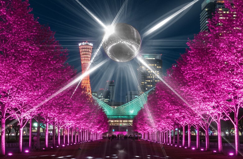 花火終演後は、神戸の夜景を借景に、メリケンパーク並木道をライトアップするナイトウォーク「ルミナスグロー」を実施。