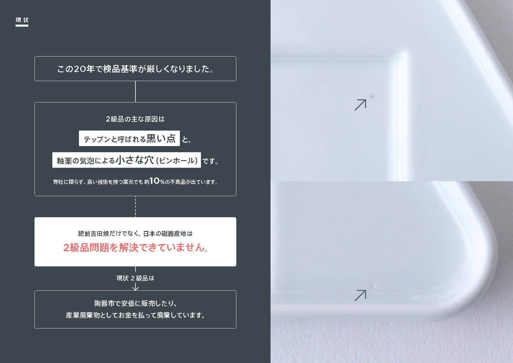 陶磁器産業は高温焼成や資源消費により環境負荷が大きいとされるが、本製品は釉薬を必要としない新素材「晟土」を用い、鉄粉による斑点を意匠として受け入れることで、工程や製造ロスを削減し、CO2排出量を従来比で約40%抑えた点が革新的である。通常は不良とされる要素をあえて素材段階から肯定し、良品率99%を実現したことも大きな成果といえる。