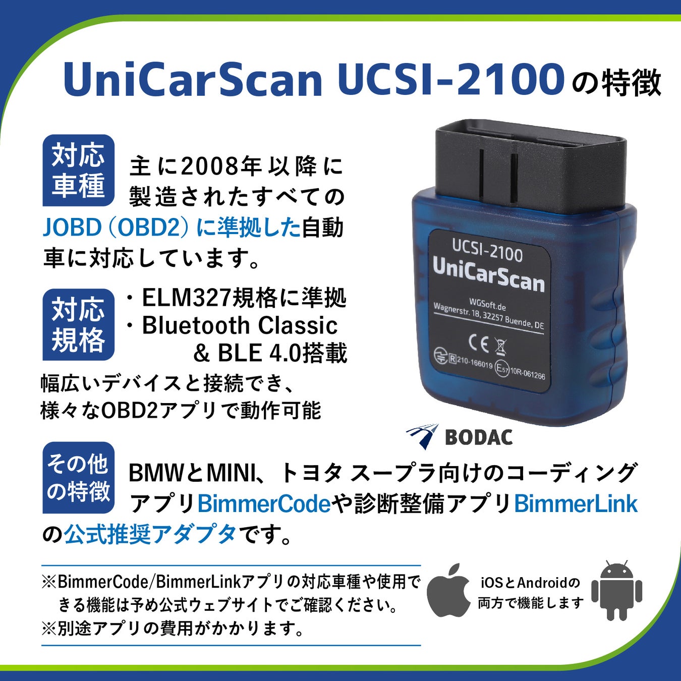 公式販売取扱代理店ブランド:CARISTA、Veepeak、UniCarScan、SMART BIMMER、BODAC
