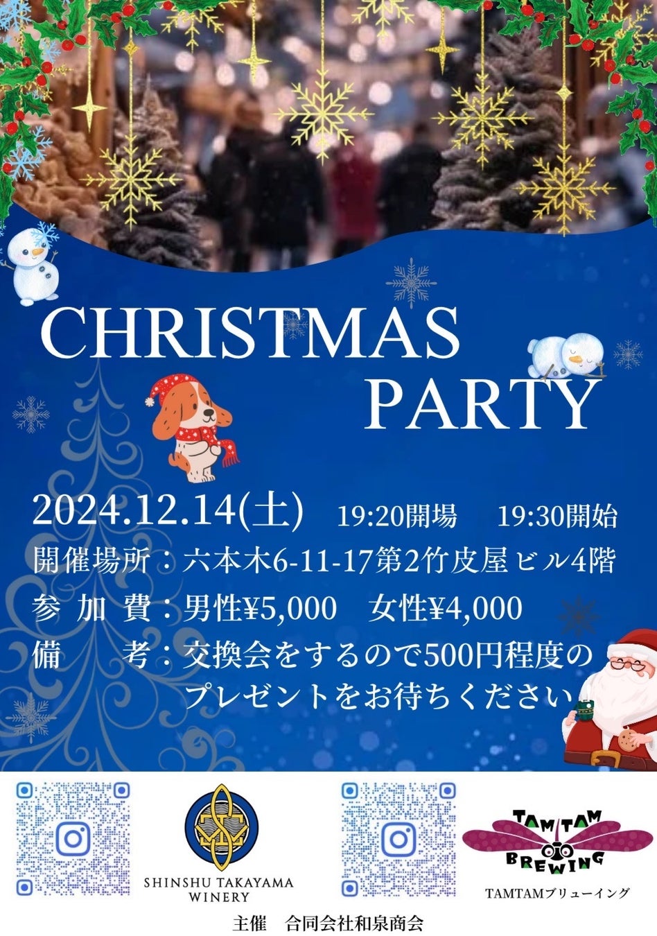 クリスマスパーティー!第8回美酒コラボイベント!合同会社和泉商会が信州たかやまワイナリー様のワイン、高山村農業醸造技研様のクラフトビール「TAMTAMブリューイング」と地域活性のイベントを開催!