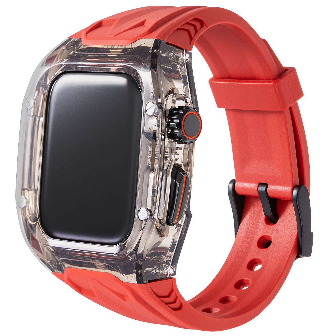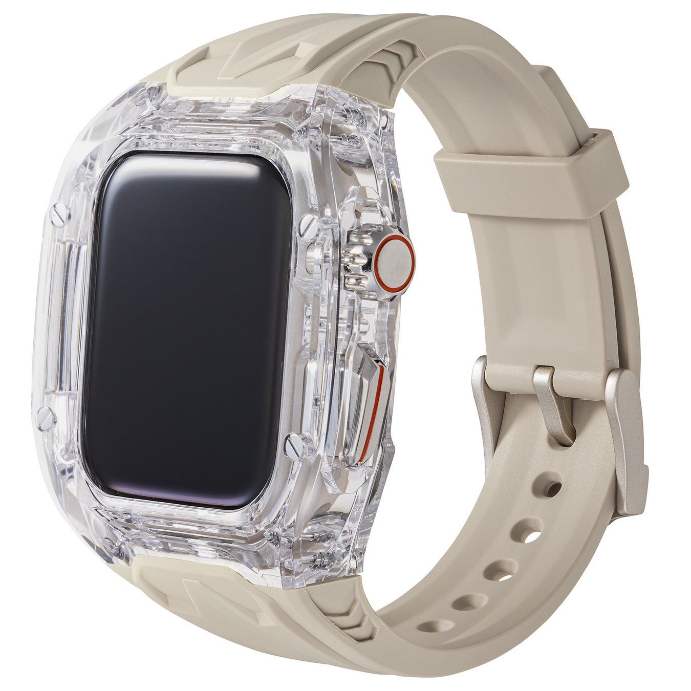 ポリカーボネートのフレームで衝撃から大切なApple Watchを守ります。また、しなやかなゴムバンドで快適なフィット感を実現します。クリアで抜け感のあるデザインは、どんなファッションにも馴染み、コーディネートの幅が広がります。