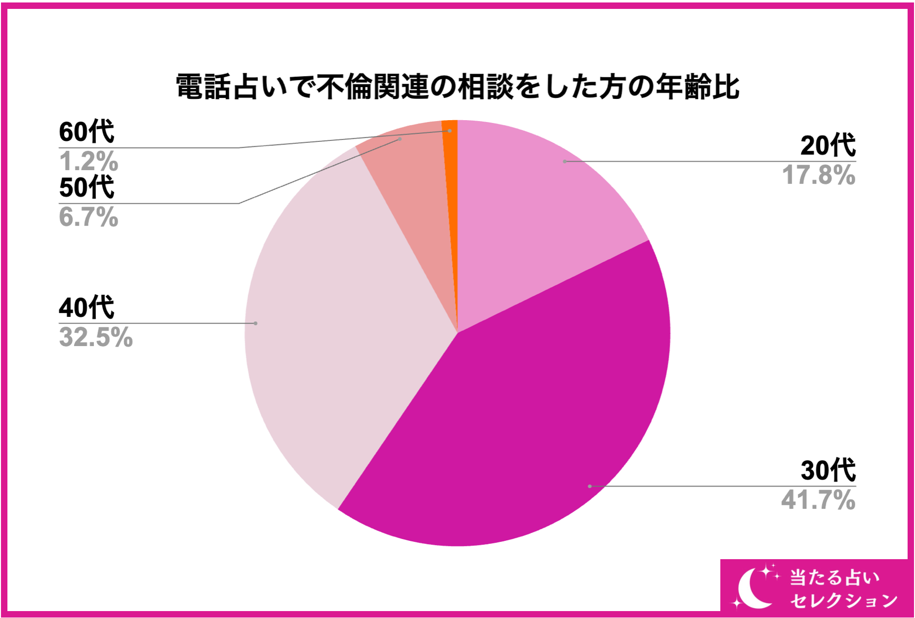 電話占いで不倫関連を相談する方の年齢比について