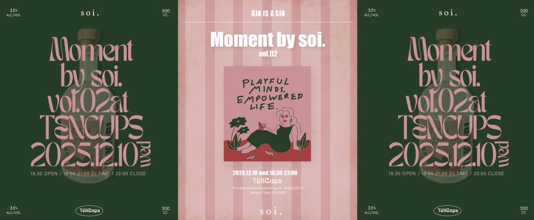 株式会社soi.(本社:東京都渋谷区)が展開するライフスタイルコミュニティブランド「Moment by soi.」は、2025年12月10日(水)18:30〜22:00、渋谷・TenCupsにて一夜限りのオリジナルラベルクラフトジンリリースイベントを開催いたします。本イベントでは、ブランド初となるクラフトジンをその場で味わえるほか、花・ジュエリー・お酒など、世界観を共有するパートナーブランドによるポップアップも同時展開。“日常にそっと特別を灯すひととき”をお届けします。