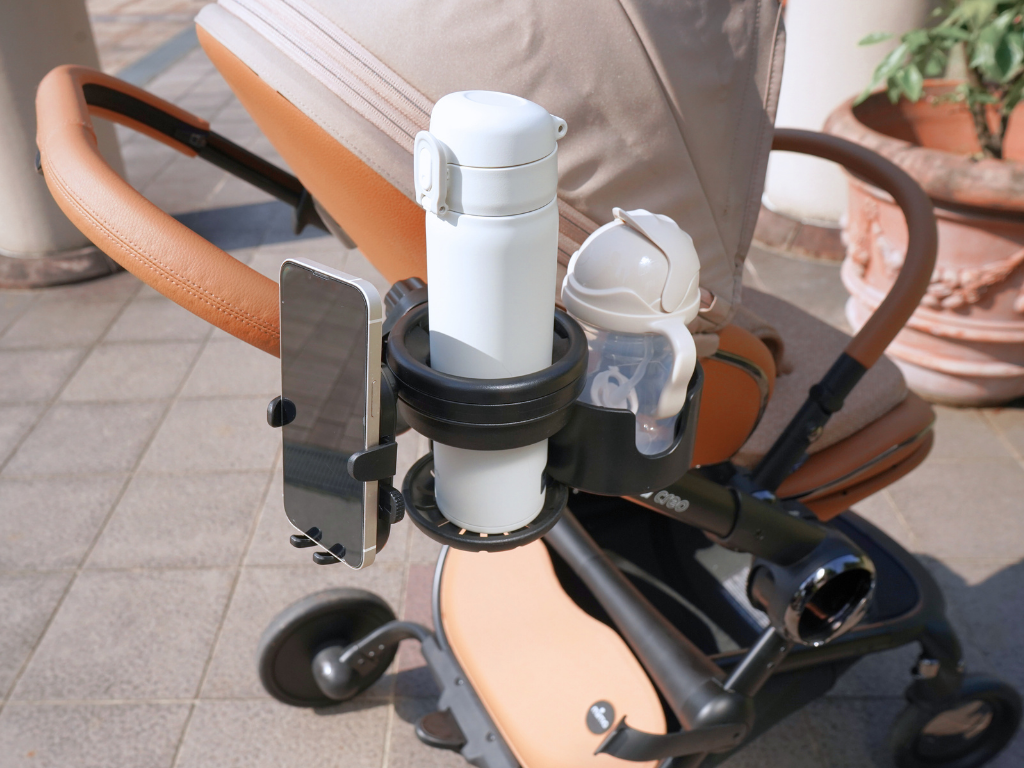 2つのクランプでベビーカーにしっかりと固定され、重たいドリンクを置いてもぐらつくことなく、他にはない素晴らしい安定感を実現しています。