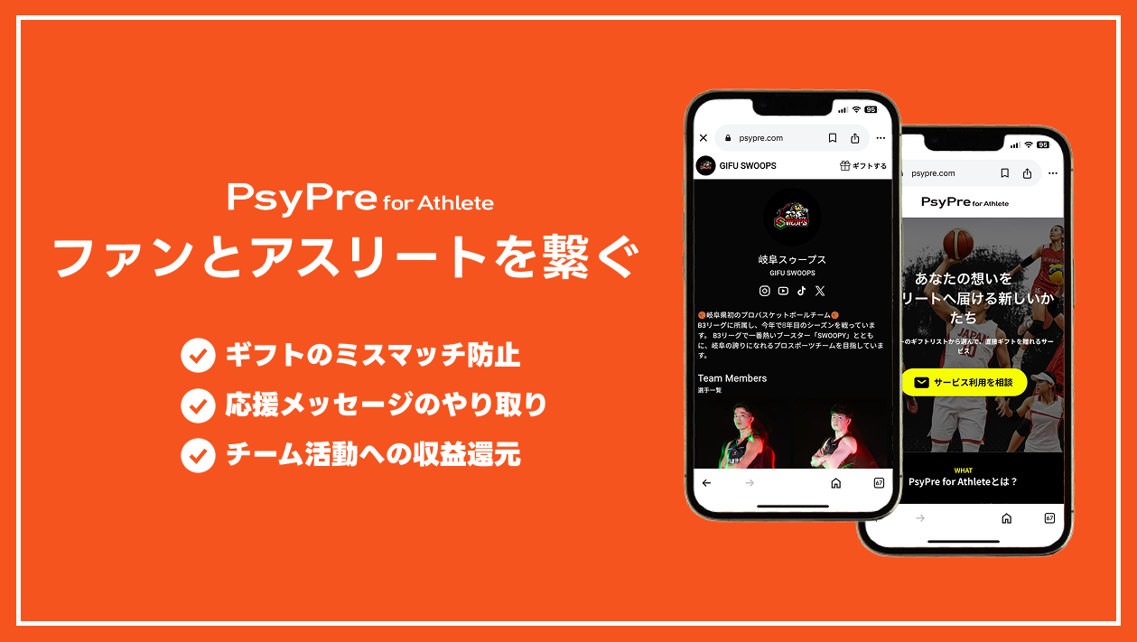 PsyPre for Athlete 岐阜スゥープス トップページ:https://psypre.com/teams/yAF9jLC3AYKwXjSAZSXD