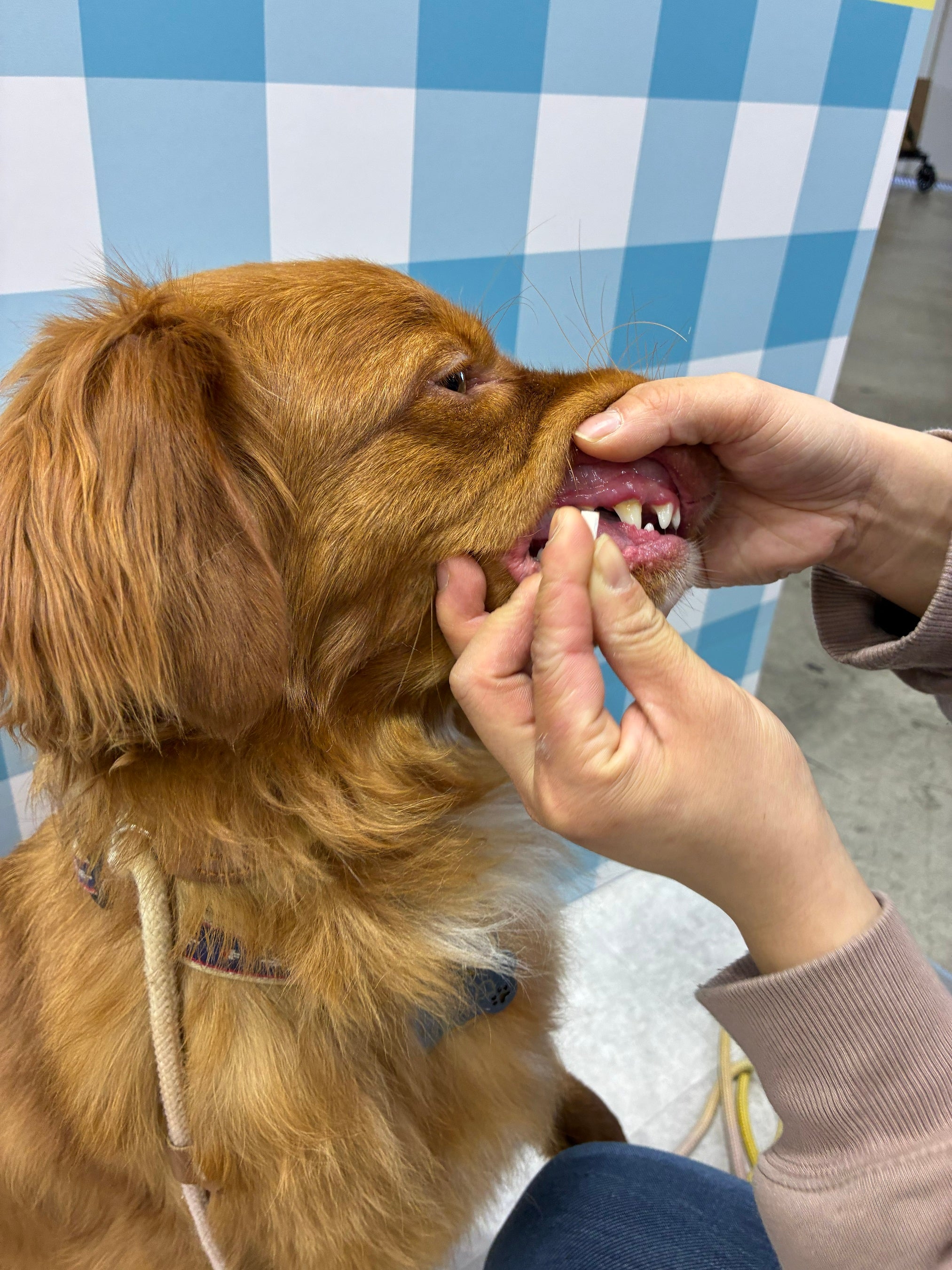 会場では、犬のお口の状態を確認できるデンタルケアチェック体験と、猫の肉球スタンプ体験を実施しました。デンタルケアチェック体験では、お口の中の特定成分に反応するチェックキットを用い、お口の状態を5段階で確認できるようにしました。状態を見える形にすることで、日常のケアを見直すきっかけとなる体験を目指しました。