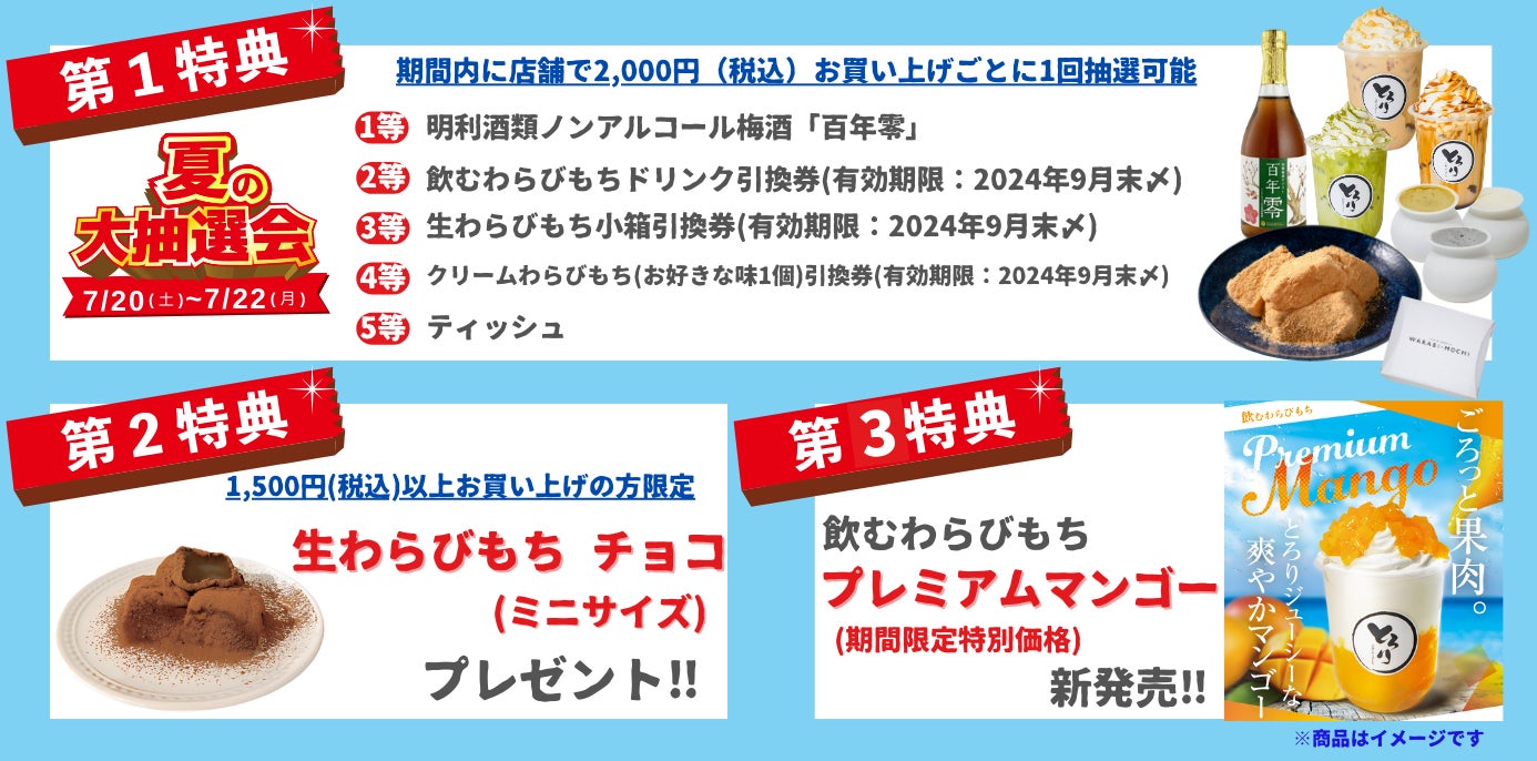 ▼特典②:新商品の「飲むわらびもちプレミアムマンゴー」を限定価格730円(税込)で販売!