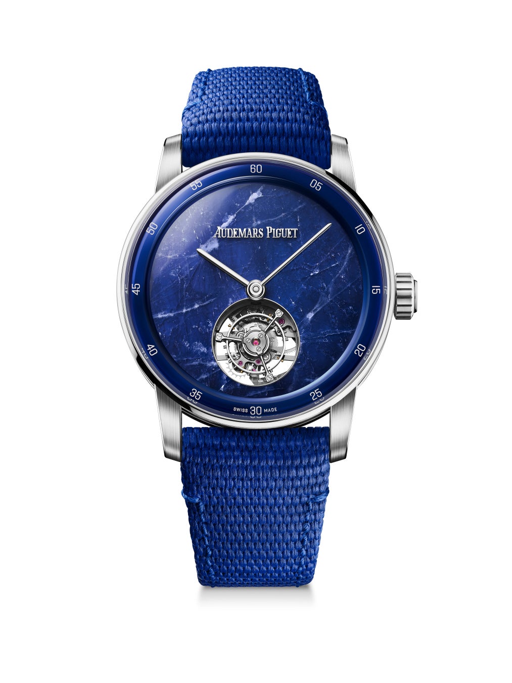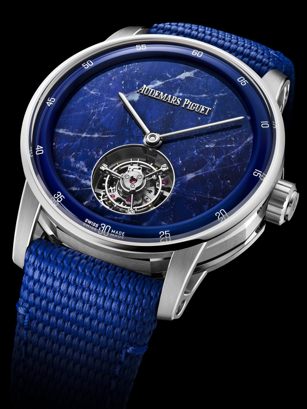 今回登場するのは、18Kホワイトゴールドケースにスモークブルーの“グランドタペストリー”ダイヤルが特徴の「ロイヤル オーク オートマティック」と「ロイヤル オーク クロノグラフ」天然ソーダライトを用いたダイヤルが美しい「CODE 11.59 バイ オーデマ ピゲ フライング トゥールビヨン」、ブラックセラミックにチタンとバーガンディのディテールを施した「ロイヤル オーク オフショア フライング トゥールビヨン クロノグラフ」で、全てのモデルは全世界に先駆けて、日本で先行発売いたします。