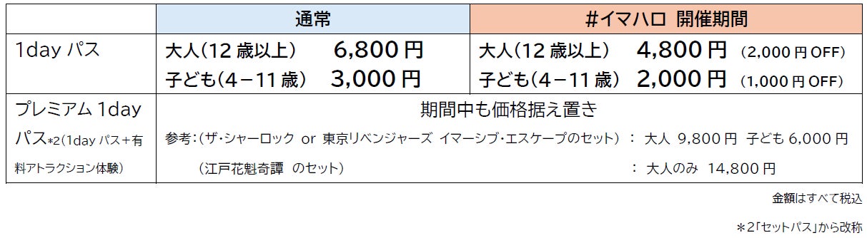 【#イマハロ 開催期間 9月13日(金)~11月30日(土) のチケット価格詳細】