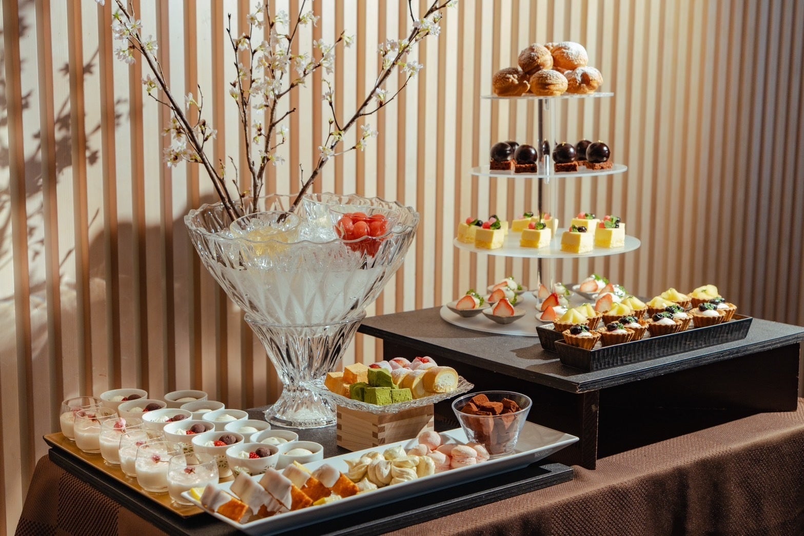 結婚式場ならではの当社のウェディング専属パティシエが、本イベントのために和と洋を融合させたスイーツを考案。お好きなものを選べるデザートワゴン形式で提供します。