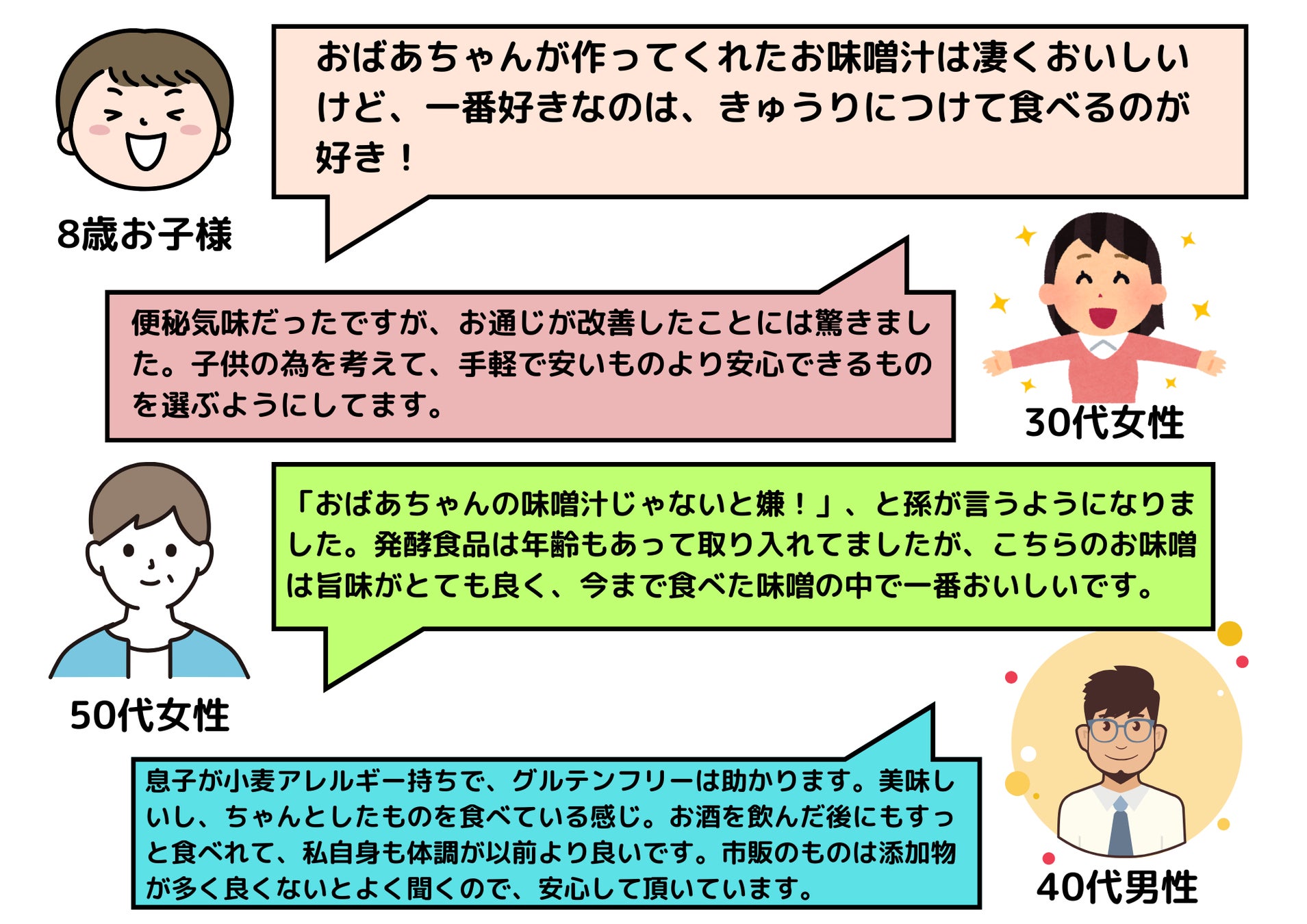 その味噌を手にした人々が次々に「もっと欲しい」「どこで買えるの?」と声をあげるようになり、やがて「市販の味噌じゃ満足できない!」と熱烈な支持を受けるまでになったのです。
