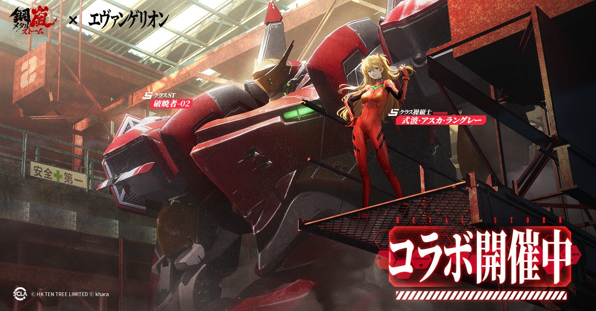 HK TEN TREE LIMITEDは、好評配信中のハイエンドメカSRPG『鋼嵐 -メタルストーム』において、本日6月4日(水)より『エヴァンゲリオン』とのコラボレーションを開催することをお知らせいたします。本コラボでは、『エヴァンゲリオン』の人気キャラクター「碇シンジ」、「式波・アスカ・ラングレー」、「綾波レイ」が操縦士として登場いたします。