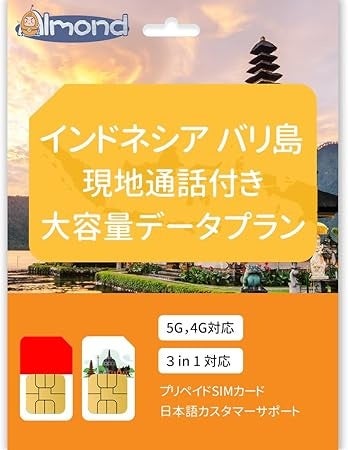 インドネシア(バリ島含む)現地通話付きプリペイドSIMカード・30日間34GBデータ・現地電話番号付き