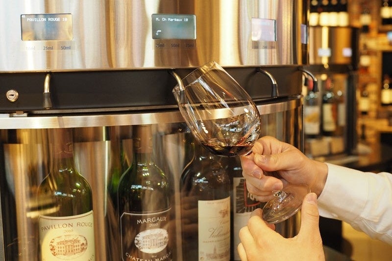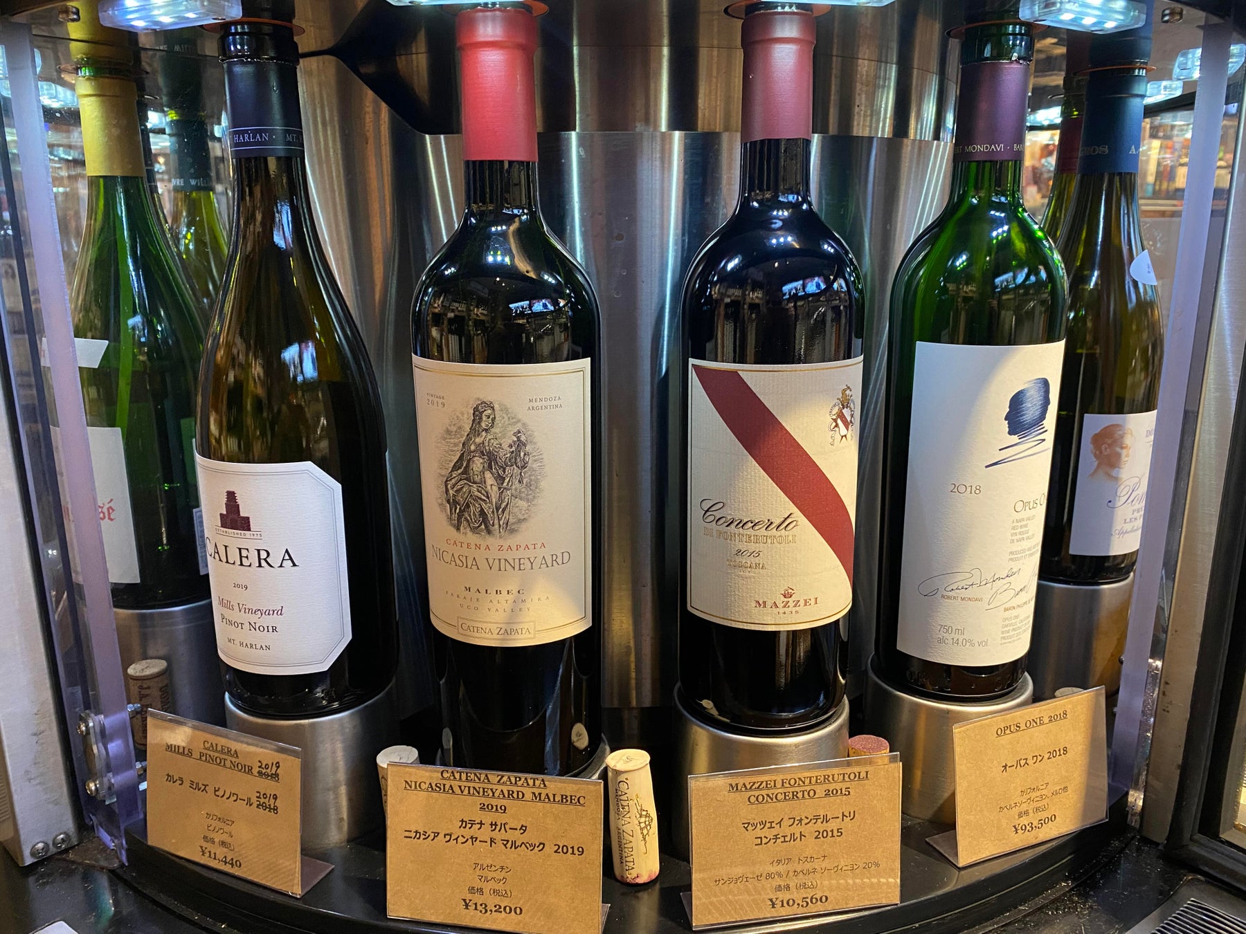 酸化を防ぎ、いつでも高級ワインをお手頃な価格で試飲できる「エノマティックサーバー」を2台設置しております。誰もがあこがれる銘柄「オーパス・ワン」等の高級ワイン32種類を、テイスティングで10ml~体験していただけます。