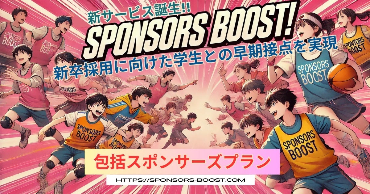 株式会社スポンサーズブースト(本社:大阪市西区、設立:2023年8月)は、企業が大学の部活に対して、小口でスポンサー出資ができるプラットフォーム「SPONSORS BOOST」を開発・販売しています。2025年1月より、支援する部活を決めないで、当社の主催の部活生との交流イベントに年間50回参加することができる包括スポンサープランの販売を開始します。