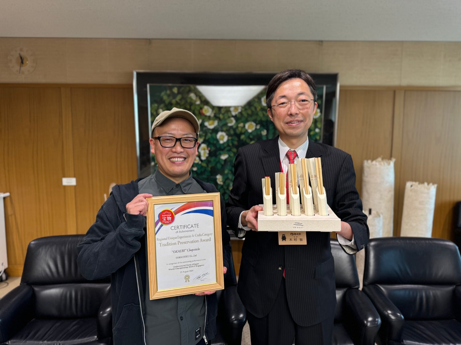 ヤマチクのお箸「okaeri」、にっぽんの宝物 世界大会2024地域独自体験&工芸・雑貨部門にて特別賞受賞