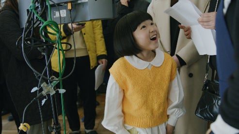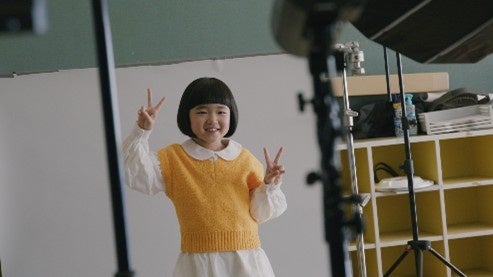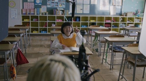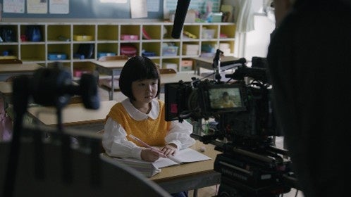 撮影は実際の学校を使って行われ、永尾さんは、撮影の合間に、共演する先生と教室で雑談するなど、穏やかな表情でリラックスした様子。撮影中は、監督からの「宇宙の顔」という無茶振りにも、臨機応変にさまざまな表情で応えました。さらに、「このシーンはどの目線がいいですか?」など、自分から演技プランも提案し、プロフェッショナルな姿も。撮影終盤で魅せた、永尾さんの「全力のにやり顔」には、スタッフからも絶賛の声が上がり、終始、永尾さんの演技力に魅せられた撮影現場となりました。