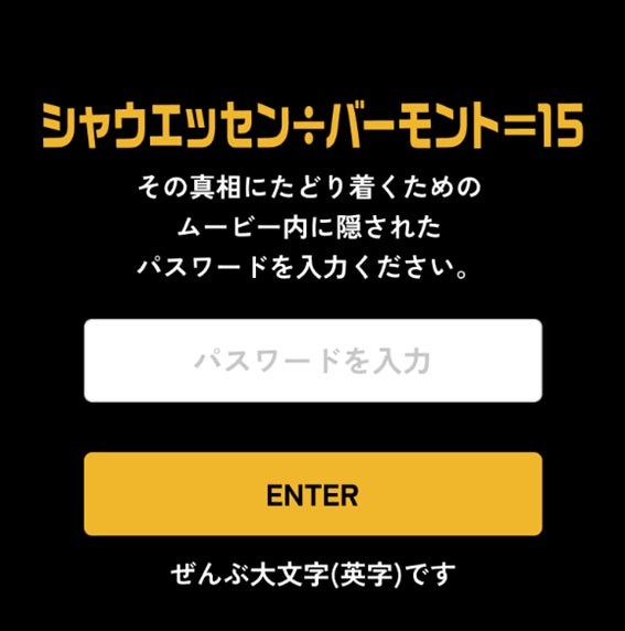 コラボムービーの公開に合わせて、パスワードを入力することで閲覧できる、コラボ特設サイトがオープンします。特設サイトでは、コラボムービー内で紹介されている「シャウエッセン÷バーモント=15」という、謎の数式の真相に辿り着くことができます。