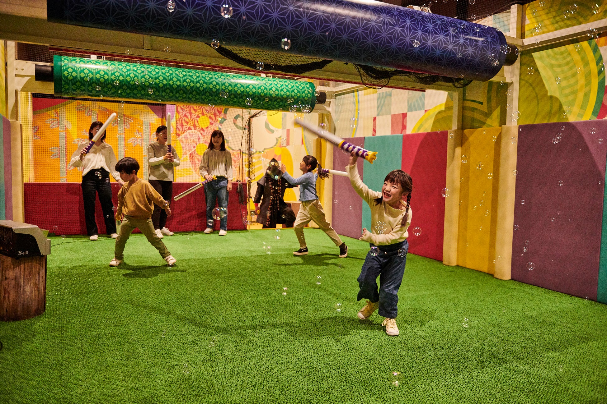 千葉真一創設のJACを源流とするJAEのアクション俳優や東映の殺陣スペシャリストに加え、ダンスバトルイベント「オールドスクールナイト」優勝経験のあるパルクール・パフォーマーらが忍者に扮して結集するライヴ・エンターテインメント・ショー「NINJA WARRIORS」をメインとして、「パルクール教室」や「スラックライン体験」なども実施。「スラックライン体験」では、ステップアップなど主要な基本スタイルを、忍者修行の技と術に置き換えることで、見るだけでなく参加いただくことで、忍者ワールドを没入体験いただけます。