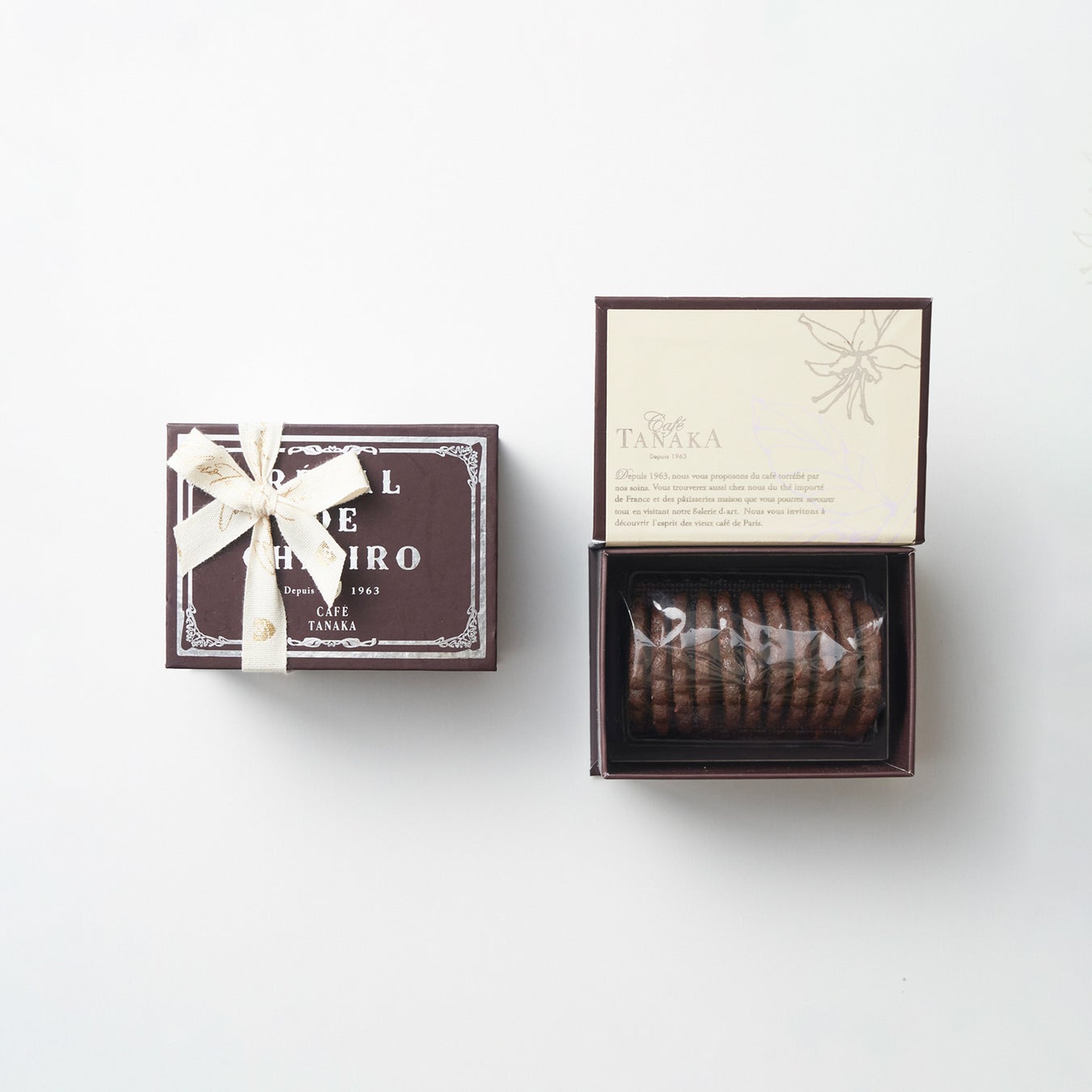 シンプルを極めた素朴で贅沢な味わいが人気の2種類のビスキュイ。特にショコラサントメは力強くウッディな香りのサントメ産カカオをふんだんに使用した、甘さ控えめの濃厚なビスキュイです。