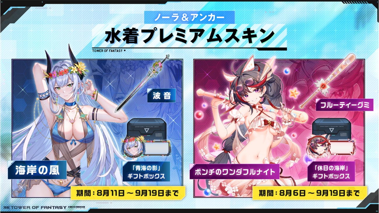 高品質で魅力的なインタラクティブエンターテインメントをお届けするグローバルゲームブランドLevel Infiniteは、PCおよびモバイル向けオープンワールドRPG『Tower of Fantasy(幻塔)』において、最新アップデートVer.4.2「清涼海岸線」を8月6日(火)に配信することをお知らせします。夏だ!大サービスだ!ドキドキサマーパーティーだ!!本アップデートでは、「ノイズ」という武器を使う新SSRキャラクター『ノーラ』(CV:村中知)や、新ボス「地馳」、新マップ「ゴゾトスネットワールド」も追加されます。是非、最新アップデートVer.4.2「清涼海岸線」の実装にご期待ください。