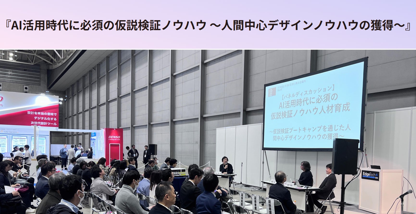 2024年11月22日、EdgeTech+2024(一般社団法人組込システム技術協会:JASA 主催)において、【パネルディスカッション】AI活用時代に必須の仮説検証ノウハウ人材育成~仮説検証ブートキャンプを通じた人間中心デザインノウハウの獲得~ という、人間中心デザインに関するパネルディスカッション形式のセミナーが開催されました。本企画は、一般社団法人 人間中心社会共創機構が共催している「仮説検証ブートキャンプ」イベントの一環として企画されたものです。