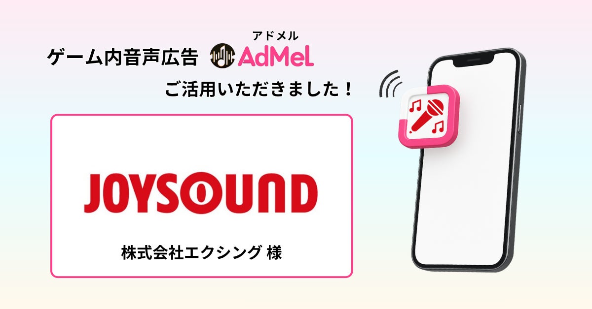 株式会社AdMel(本社:東京都渋谷区、代表取締役CEO:高橋桃花)は、USEN&U-NEXT GROUPの株式会社エクシングが展開するJOYSOUNDのアニメファン向けプロジェクト「どアニメ宣言!JOYSOUND」において、スマートフォンゲーム内音声広告「AdMel(アドメル)」を活用したプロモーションを実施いたしました。