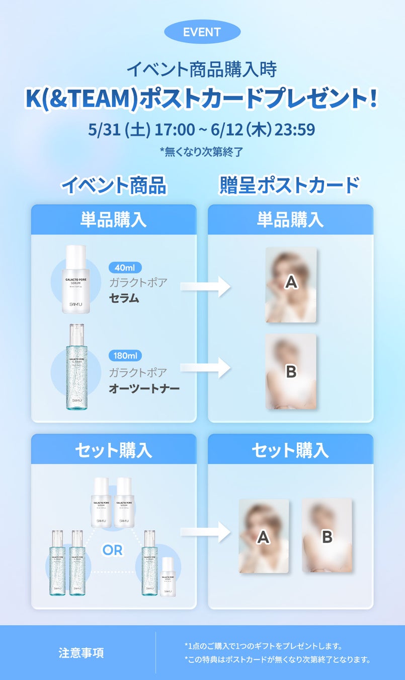 メガ割期間中にガラクトポアラインを購入すると、ブランドアンバサダーの&TEAMのKさんのオリジナルポストカードをプレゼント(※制限はございませんが、ポストカードは数に限りがあり、無くなり次第終了とさせていただきます。)