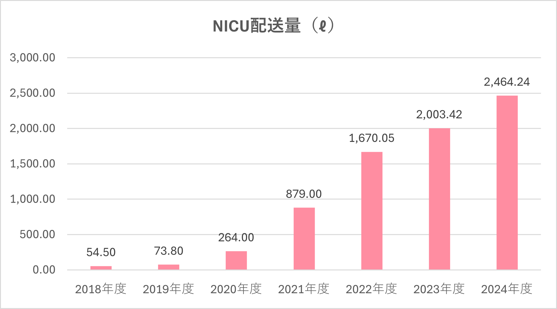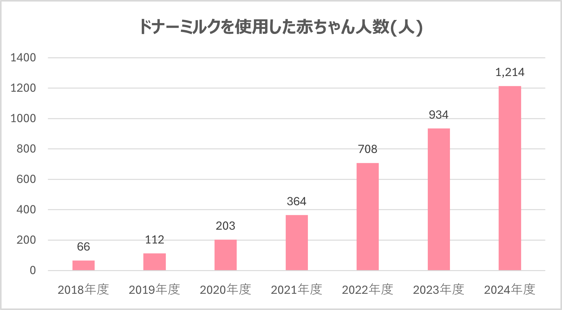 (※1)日本財団母乳バンクは2022年度より稼働を開始したため、2018年度から2021年度は日本母乳バンク協会のみのデータを使用し、2022年度から2024年度は日本財団母乳バンクと日本母乳バンク協会の合算データを用いています。