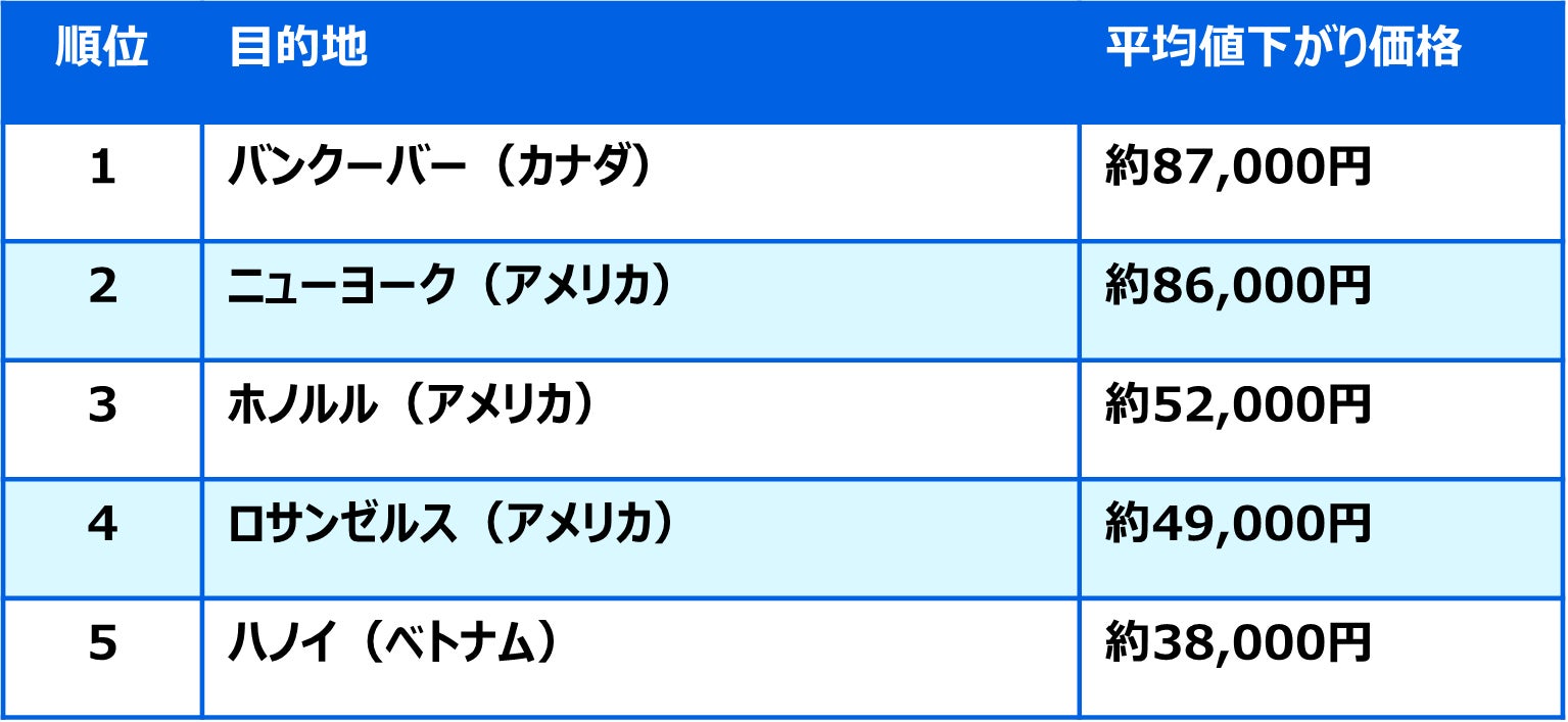 ③ 航空券価格の平均値下がり幅が大きかった旅行先はバンクーバー!