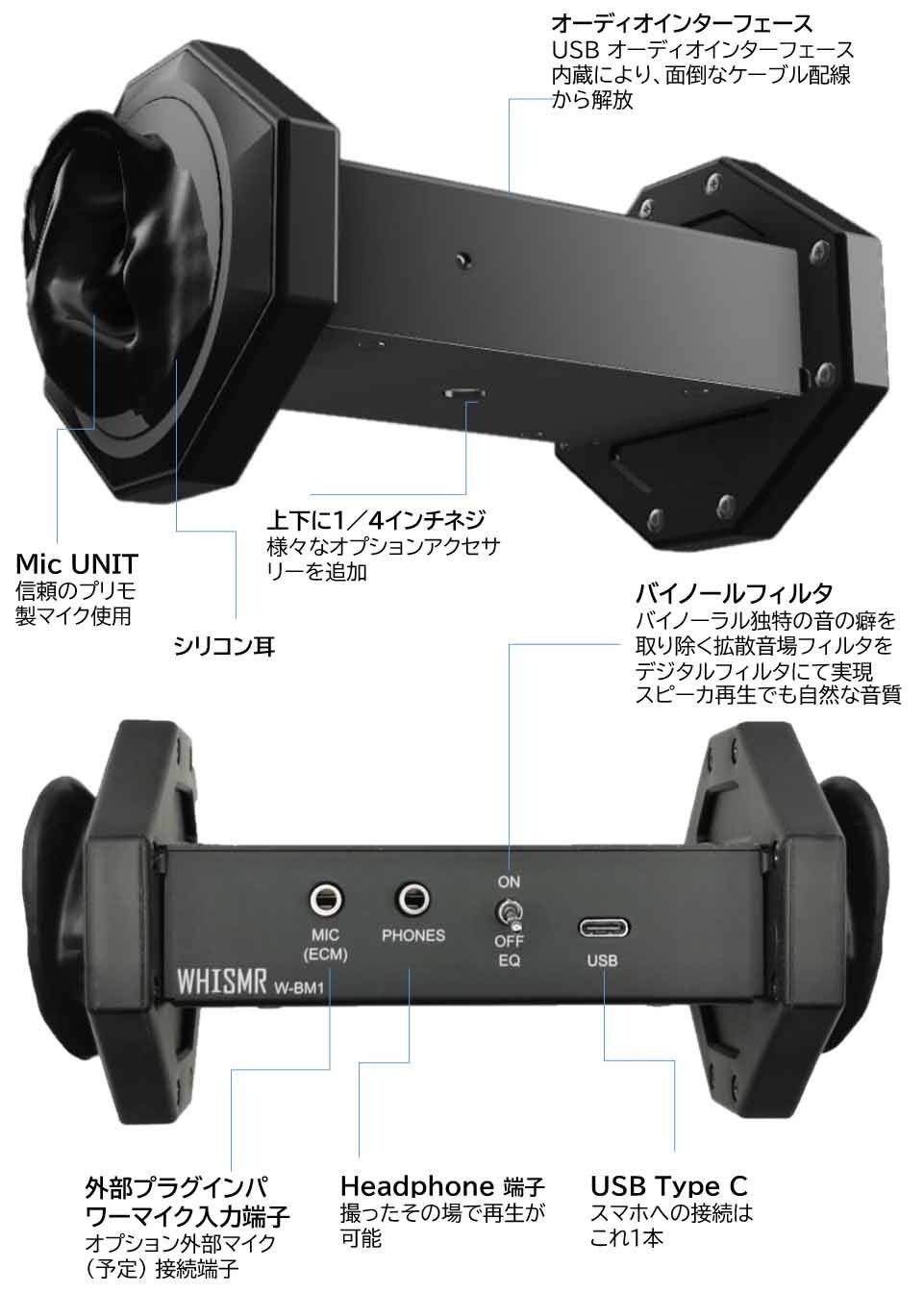 WHISMR合同会社(代表 山田裕司)は、オーディオインターフェースを内蔵し、Type-Cケーブルでスマホにつなぐだけで手軽にバイノーラルサウンドを収録できるASMR・バイノーラルマイク「W-BM1」を、2月15日(土)より一般販売開始します。