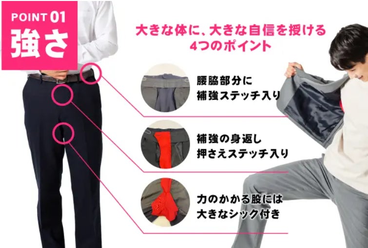 4方向ストレッチ素材を使用し、一日中快適なフィット感を維持。長時間の着用でも、スーツの型崩れはありません。さらに二の腕や大胸筋、ヒップにゆとりを持たせた下石鳴るパターンを採用しました。タクシー、バスの制服を作って57年の弊社だからこそ実現できる、強く快適な一着です