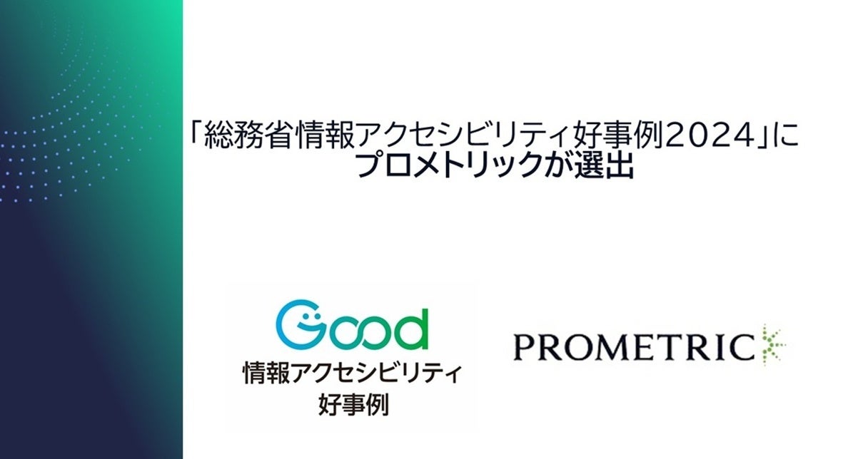 プロメトリック株式会社(東京都千代田区、代表取締役:ジェームズ・ヘーゲンブッシャー、以下プロメトリック)は、総務省の「情報アクセシビリティ好事例2024」において、弊社の試験配信ソリューションに関するウェブサイトが選定されたことを発表いたします。