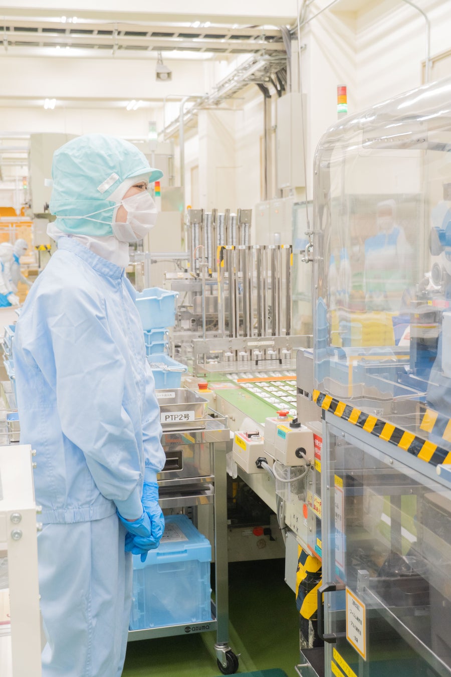 当社はデザイン発案者の西山萌珈さんを工場に招き、ご自身が手がけたデザインが商品として生産される現場を見学していただきました。西山さんからは「お菓子の工場見学は初めてだったのでとても楽しかったです。粉末からひとつぶに押し固めてヨーグレットが作られているところを見ることが出来て感動しました。自分が考えたパッケージが商品になったことがまだ信じられなかったのですが、それが実際に工場でたくさん流れてくる様子を見たときには、“本当にお客様の手に届くんだ”と強く実感しました。」との感想をいただいています。