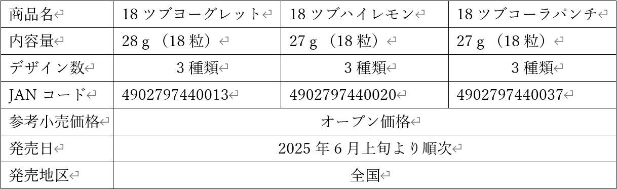 発売から40年以上愛され続けるロングセラー「ヨーグレット」「ハイレモン」や、国内唯一の炭酸キャンディ製造技術を用いた「パチパチパニック」を中心に、特長高い各種タブレット・キャンディ・グミ商品を製造販売しています。