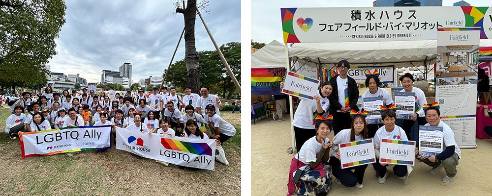 積水ハウス株式会社とフェアフィールド・バイ・マリオット 道の駅プロジェクト(※¹)は、2024年10月23日~26日に大阪で開催されたIGLTA世界総会にオフィシャルスポンサーとして参加しました。26日~27日には、関西過去最大級規模で実施された「レインボーフェスタ!2024」に共同で出展。27日に開催されたパレードには、積水ハウスグループの社員とその家族や友人、合わせて59人が参加しました。積水ハウスとフェアフィールド・バイ・マリオット 道の駅プロジェクトは、誰もがいきいきと活躍できる社会の実現の一助となることを目指します。