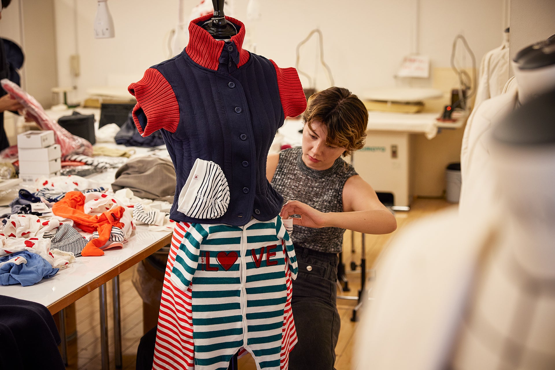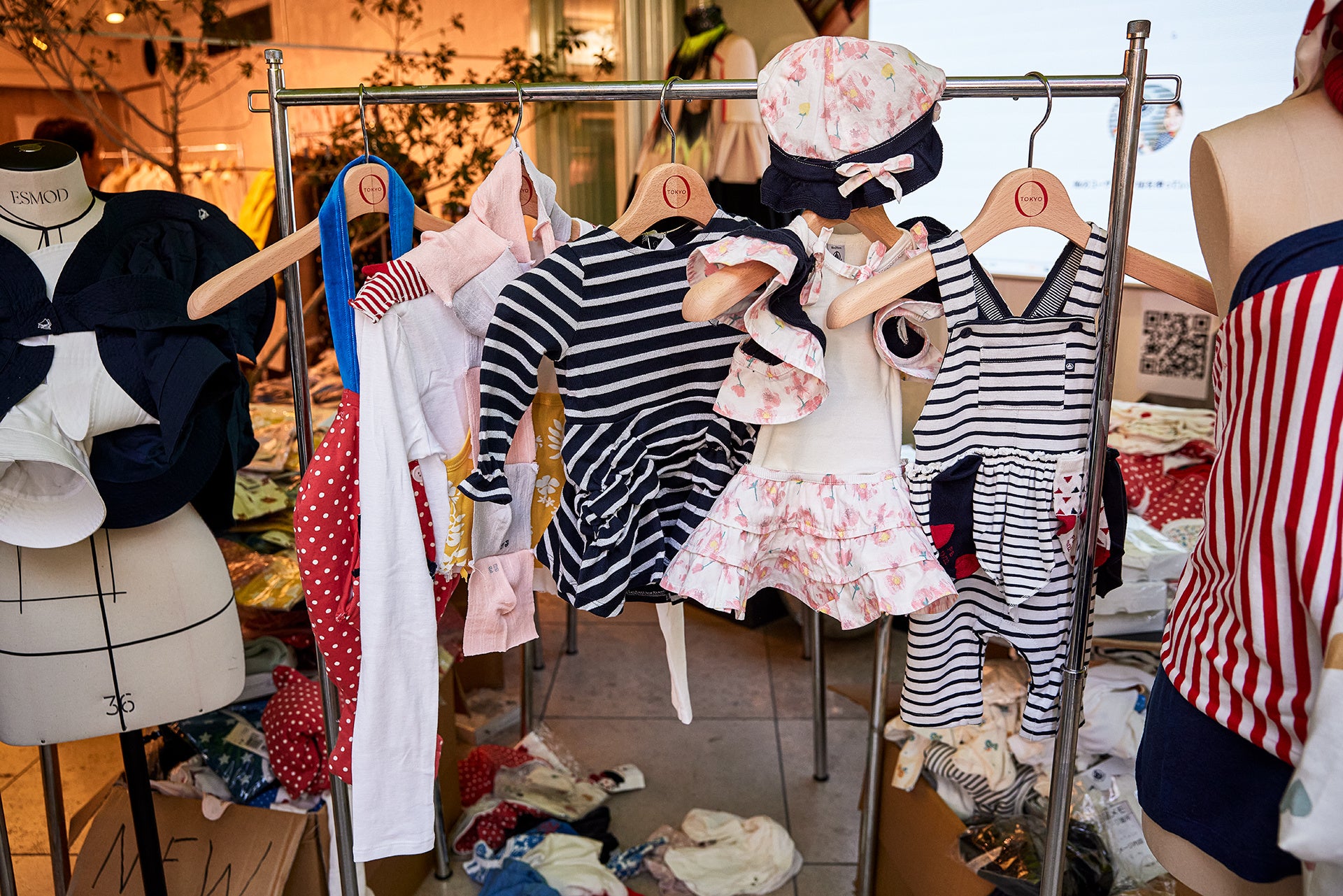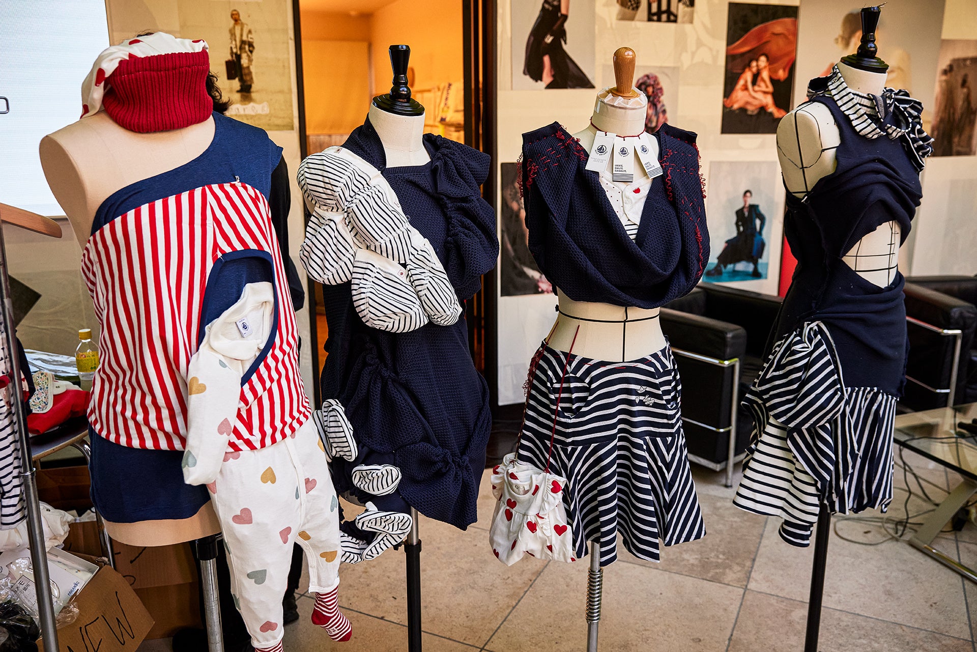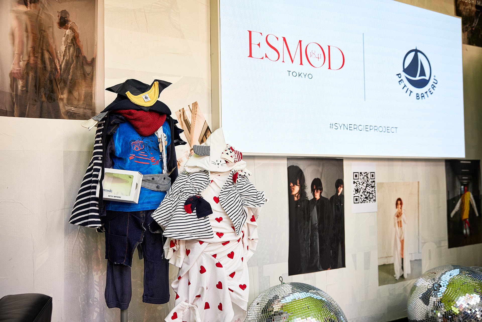 今回のコラボレーションでは、プチバトーの余剰在庫や規格外の素材を使い、エスモード・東京校の学生達が自由な発想でクリエイションを追求。33作品のユニークでファッション性の高い作品が完成しました。プチバトーのクリエイティブ・ディレクター、リディ・ド・ボープレによる審査が行われ、優秀作品に選ばれた3つのルックは、プチバトーブティック 代官山店と阪急うめだ本店POP UPにて展示されます。