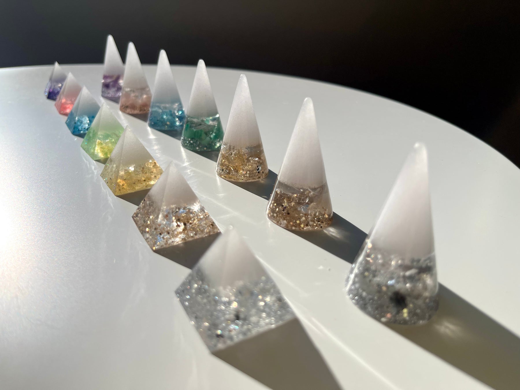 ※Crystal Cone は各カラーで水晶+各種ストーン、Mini Pyramid は 水晶のみ を使用。