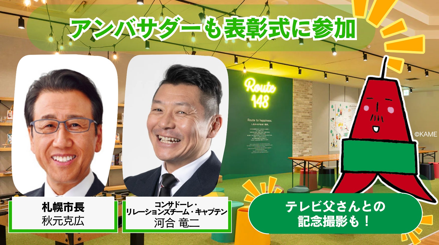 「サステナ KIDS AWARD」は、2023年に札幌市で開催されたG7気候・エネルギー・環境大臣会合のソフトレガシーで、札幌市内の小・中・高校に通う子どもたちを対象に実施するアワード形式の次世代グリーン人材育成プロジェクトです。「テレビ父さん」「秋元札幌市長」「北海道コンサドーレ札幌の河合竜二氏」がアンバサダーを務めるほか、石屋製菓や円山動物園、AOAO SAPPOROをはじめ札幌の企業も多数参加し、札幌市の持続可能な社会の醸成に向けた機運を盛り上げています。