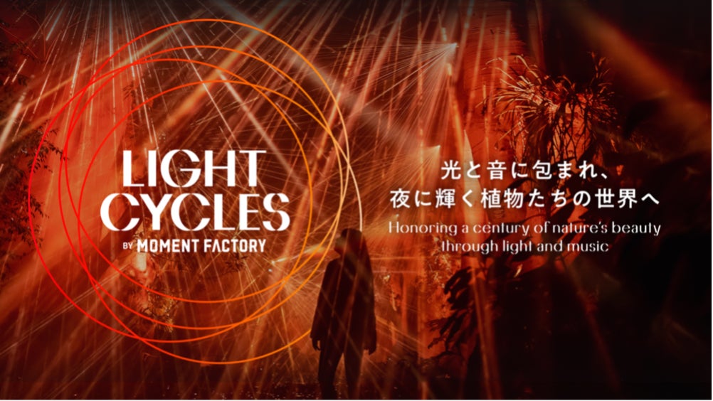 累計3万人が来場した「LIGHT CYCLES KYOTO(ライトサイクル キョウト)」は、「生物多様性」をテーマに、世界最高峰のマルチメディア・スタジオ「Moment Factory」が、日本最大規模を誇る京都府立植物園の「観覧温室」を舞台に、観覧温室内の異なる7つの自然環境下で栽培される多種多様な植物と、Moment Factoryが手がける光、音、プロジェクションのコラボレーションを通して、人間の「目」とは異なる植物ならではの「見え方」、植物と自然との関わり方、植物同士で繰り広げられるコミュニケーションなどを没入体験と共にお愉しみ頂けるイベントとなっております。