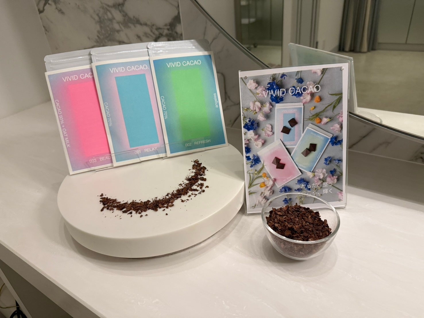“からだ整う、こころ輝く”をミッションとして、多様な女性のライフスタイルを豊かにする製品を提案する会社です。「毎日を前向きに過ごしたい気持ち」を応援する「VIVID CACAO」のチョコレートは、日常を少しでもサポートできる存在を目指しています。