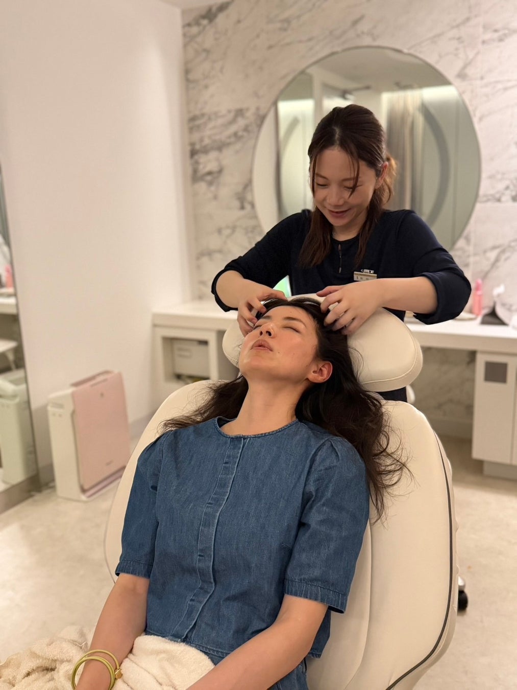 前頭部、側頭部、後頭部をメインに、首、肩、デコルテまで渡部さんの心地よい刺激で全身の力がさらに抜け、身体がシートに沈んでいってしまうよう。