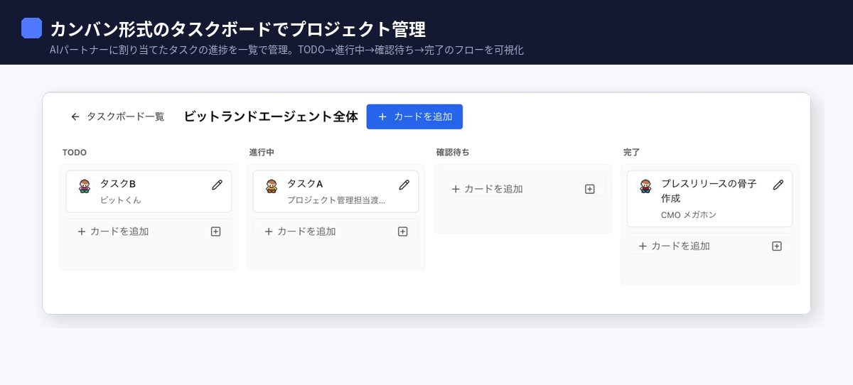 アサインされたタスクを自動で処理するだけでなく、「この業務を完了するには、さらにこのタスクも必要だ」と自ら判断し、タスクボードに新しいタスクを追加して実行するという、人間さながらの自律ループを実現しています。