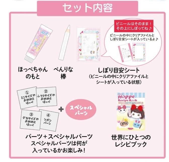 「ほっぺちゃん」は、クリームのような“しぼり出し”スタイルで一体ずつ手作りされることが特徴のキャラクター。これまで、ニンテンドー3DSやSwitchで“しぼる”ゲームとしては展開されてきたものの、実際に自分の手で作れる本格的なキット化は今回が初となります。
