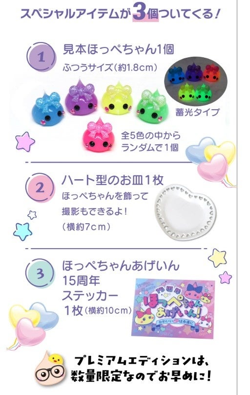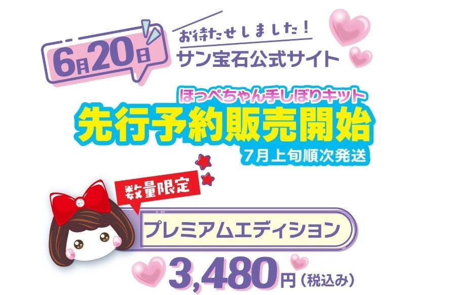株式会社みっとめるへん社 サン宝石事業部(本社:東京都文京区、代表取締役:鈴木伸也)は、オリジナルキャラクター「ほっぺちゃん」の誕生15周年を記念し、ファン待望の公式商品「ほっぺちゃん手しぼりキット」を発売いたします。これは、シリーズ初の立体クラフトキットであり、ファンから長年にわたり熱望されてきた商品です。