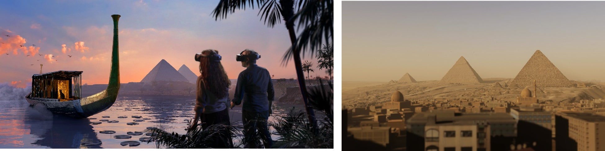 オープニングコンテンツとして、ファラオ時代のエジプトへのバーチャルリアリティの旅『Horizon of Khufu(ホライゾン・オブ・クフ)』をご体験いただけます。VRカルチャー&エンタテインメントの第一人者であるフランスのExcurio(エクスキュリオ)によって作られた「没入型探検」である同作品は、これまで世界18都市で200万人以上に体験されています。この没入型探検では4500年前の古代エジプトを舞台に、ギザ台地の上空飛行、クフ王のピラミッド頂上への登頂と圧巻の360度パノラマ、ミイラ化の儀式が行われる大ピラミッドの通路と埋葬室、王妃の間の発見、そしてナイル川で行われるクフ王の葬儀参列などが展開されます。まるで時空を超えて旅をするかのように、圧倒的な没入感とともに物語の世界を体験していただけます。