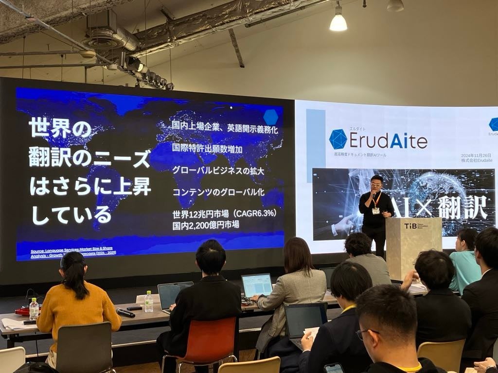 株式会社ErudAiteは、2024年に創業された翻訳AIエージェントスタートアップであり、59言語すべての組み合わせに対応した文脈理解型AI翻訳エンジンを開発・提供しています。法律・財務・IR・文芸などの翻訳において人間翻訳者に匹敵する品質を実現。2025年4月には、Word/PowerPoint対応のファイル翻訳機能(α版)をリリースし、実務環境に即したスピードと精度を提供しています。