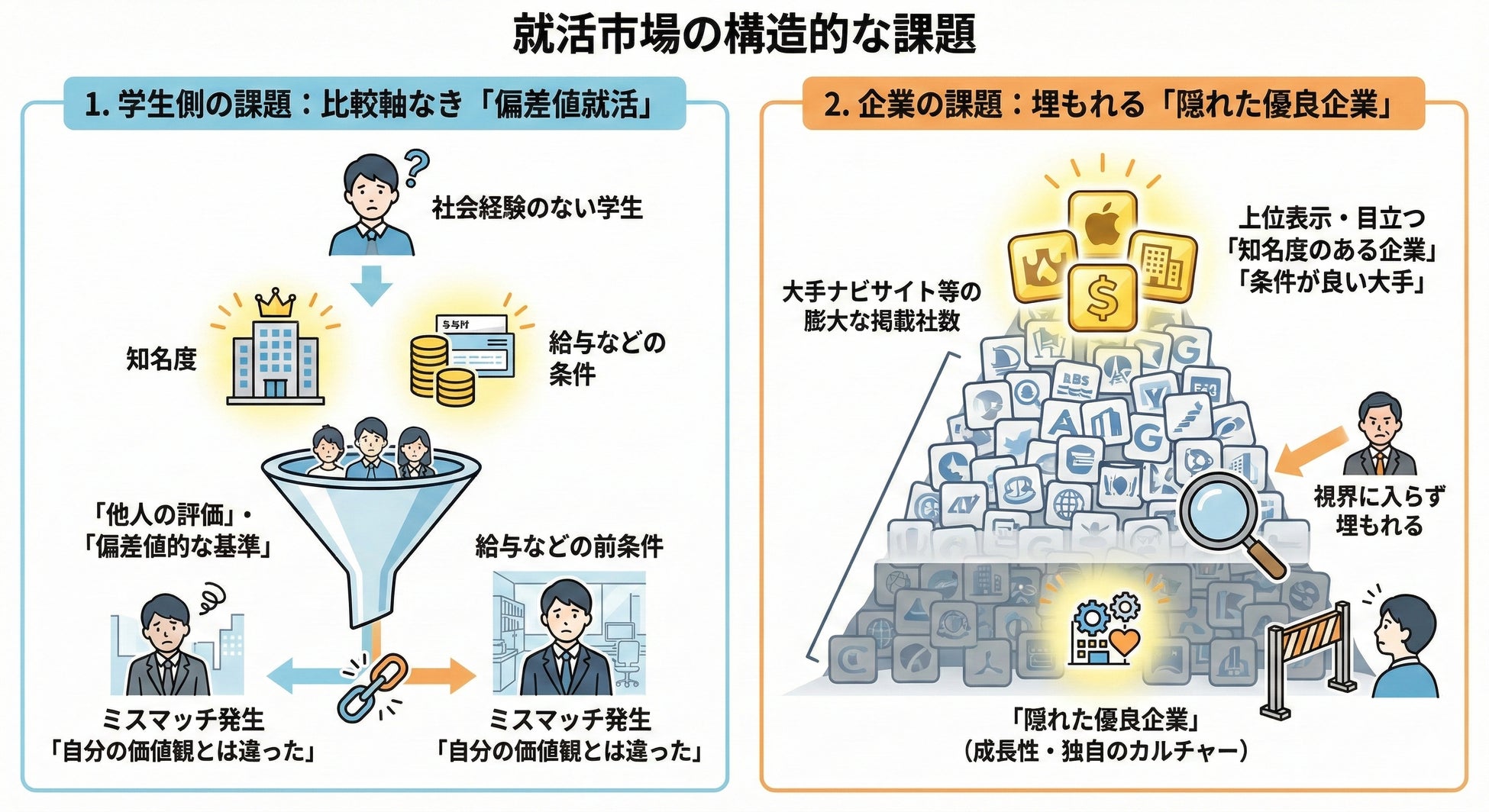 1. 学生側の課題:比較軸を持てないまま、「偏差値就活」に陥る