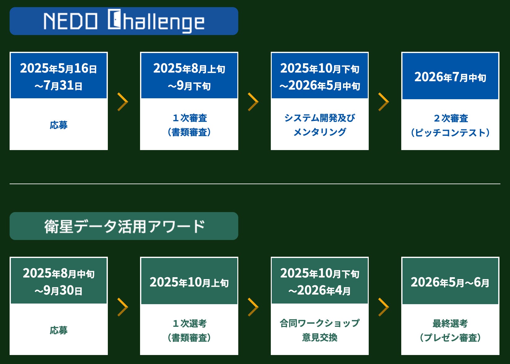 国立研究開発法人 新エネルギー・産業技術総合開発機構(NEDO)が主催する「NEDO Challenge」および「衛星データ活用アワード」の一次審査を通過したことを発表しました。