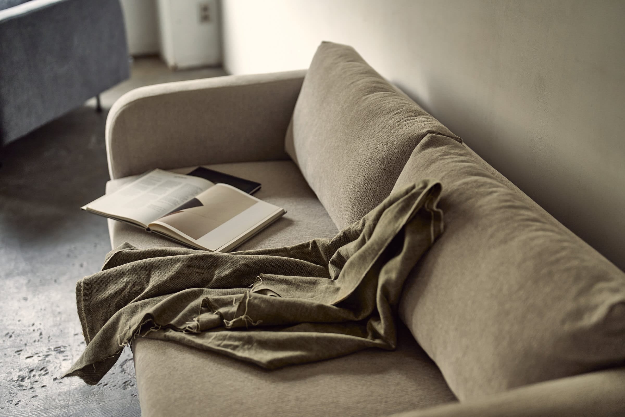 うたたねや、静かな時間を過ごすのに適した一台。ソファとベッドの中間のような存在で、一日のリズムに自然と溶け込みます。